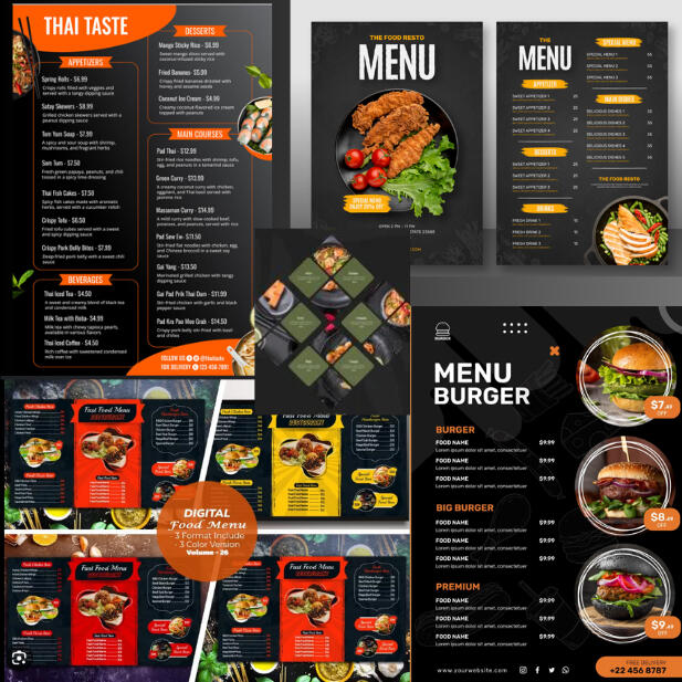 Restaurant and bar menu designs blend style and functionality, creating visually appealing layouts that highlight your offerings. Designed for readability and customer experience, they elevate your brand while enhancing dining ambiance.